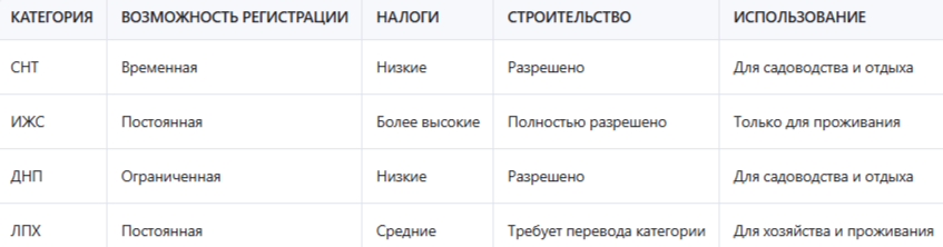 Если ваша цель — отдых и сезонная аренда, то СНТ — оптимальный выбор. Если вы хотите строить дом и жить круглый год — ИЖС. Если же ваша цель — ведение хозяйства и регистрация — подойдет ЛПХ.