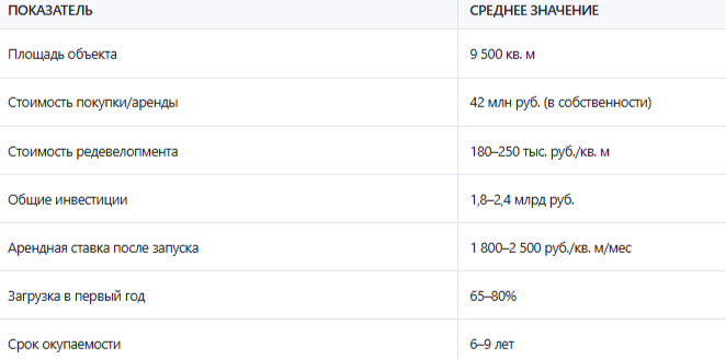 Сегодня на этом месте — бизнес-кластер с коворкингом, рестораном и лофтом под бутики. Окупаемость — 6,8 лет. И это при консервативном подходе.