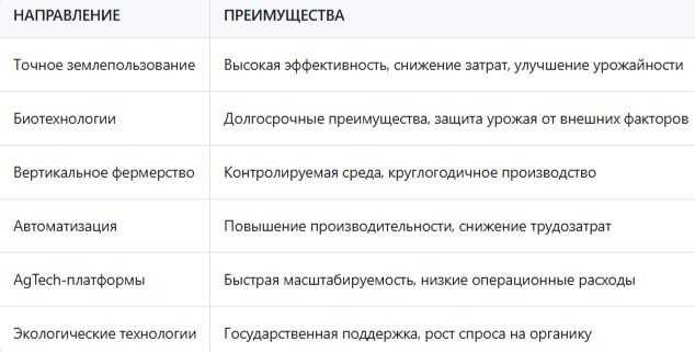 Эти факторы формируют мощный тренд на развитие агротехнологий, который будет только усиливаться в ближайшие годы.